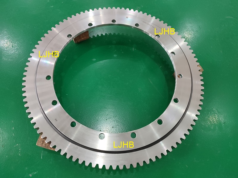 The bearing JK6-22E1Z outer ring with gear teeth, and the inner ring with a flanged structure. The bearing full size 25.15*17.09*2.205 inch size or metric size 638.1*434*56mm are well suited for many application such as Small cranes, booms, and lifts, Industrial positioners and rotary tables