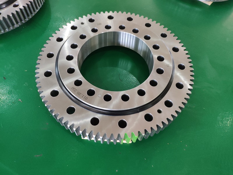 The standard bearing type 011.20.250 belongs to four point contact ball bearing with external teeth. external gear teeth, select able internal clearance, sealed, lubrication nipple on circumference of ring without teeth.